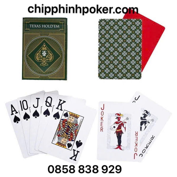 Bài Nhựa Poker thường có kích thước 63x88x0.3mm theo tiêu chuẩn quốc tế, số to dễ nhìn hơn bài giấy.