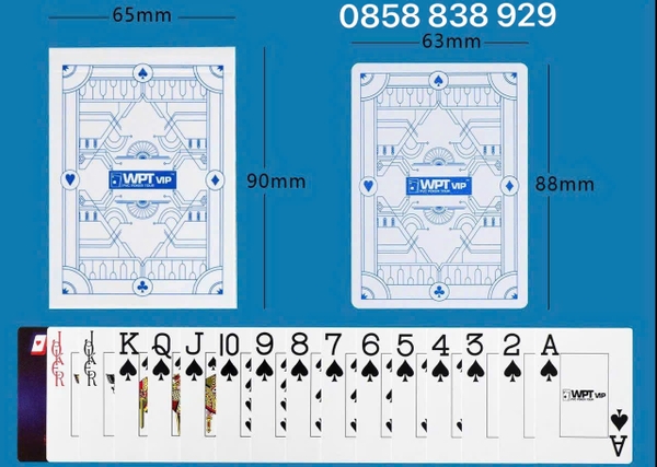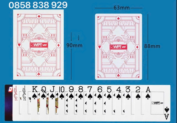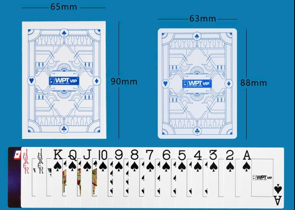 Bài Nhựa WPT VIP ( PVC Poker Tour) Là Dòng Bài Số To ( Jumbo Index) Được In Với Size To Hơn Kể Cả Lá Bài, Các Chữ và Số Trong Bài. Các Quân Bài Từ 2 Đến Át Đều Có Ô Hình Chữ Nhật Viền Bao Quanh.