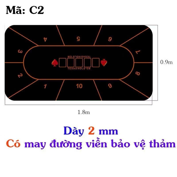 thảm poker cao su cao cấp dày 2mm bo viền đẹp