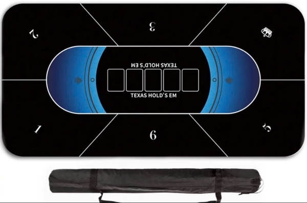 Thảm poker được sử dụng nhiều do tính cơ động dễ di chuyển theo người, Hiện tại trên thị trường có các mẫu thảm poker: thảm nỉ, thảm vải, thảm cao su. Kích thước thảm poker 90x180cm chơi tối đa 10 người, thảm poker 60x120cm chơi tối đa 6 người, thảm poker 75x150cm chơi tối đa 8 người.