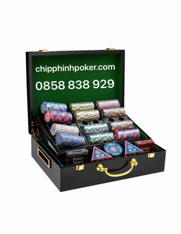 Ví Dụ Một Bộ 300 Chip gồm: 1 Vali chống sốc sang trọng, 300 Chip Poker, 2 bộ Bài nhựa poker, thẻ Dealer, thẻ Big Blind, thẻ Small Blind, 5 Xúc Xắc.