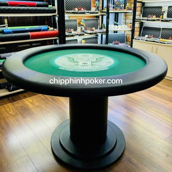 bàn poker tròn có viền bàn và chân bàn bọc da cao cấp