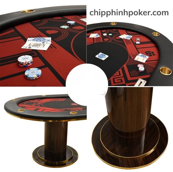 bàn poker tròn cao cấp có 6 cup holder mạ vàng cao cấp, có gác để chân mạ vàng đẳng cấp