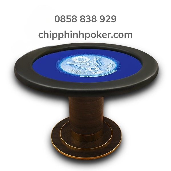 bàn poker tròn bọc da cao cấp, mặt bàn màu xanh in hình eagle