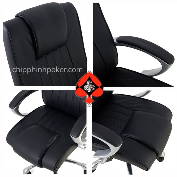 ghế poker cao cấp có phần ngồi và tựa lưng đúc liền khối, bọc 2 lớp da chuyên dụng
