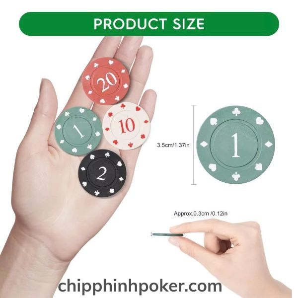chip poker có kích thước theo tiêu chuẩn quốc tế