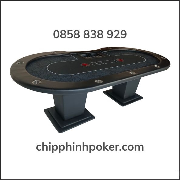 Bàn Poker Bình Thuận Cao Cấp Chuyên Nghiệp : được thiết kế theo tiêu chuẩn quốc tế có kích thước 80x120x240cm thường dành cho 10 người chơi. Bàn Poker được trang bị đầy đủ các phụ kiện như Tray, Rake, hệ thống Cup Holder chuyên nghiệp. Viền bạn được ốp da Micofiber Black cao cấp cho cảm giác êm ái khi tỳ tay và được bo viền kim loại trang trí sang trọng. Mặt bàn sử dụng gỗ cao cấp chịu lực tốt chống cong vênh mối mọt, mặt bàn sử dụng vải Gaming Suede chuyên dụng nhập khẩu từ châu âu, có khả năng kháng nước, chống nhăn, bề mặt bàn luôn láng mịn giúp quân bài lướt êm mượt. Chân bàn được ốp Melamine vân gỗ chống ẩm bền đẹp cùng thời gian. Đế chân bàn được ốp Melamine bi viền kim loại sang trọng.