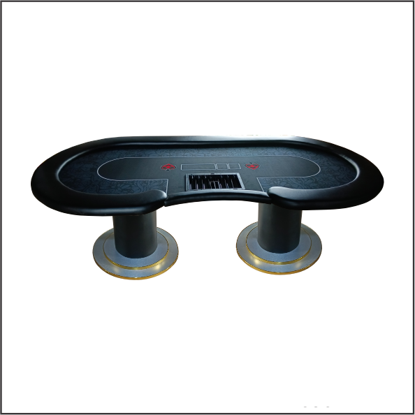 Bàn Poker Chuyên Nghiệp Cần Giờ: được thiết kế theo tiêu chuẩn quốc tế có kích thước 80x120x240cm thường dành cho 10 người chơi. Bàn Poker được trang bị đầy đủ các phụ kiện như Tray, Rake, hệ thống Cup Holder chuyên nghiệp. Viền bạn được ốp da Micofiber Black cao cấp cho cảm giác êm ái khi tỳ tay và được bo viền kim loại trang trí sang trọng. Mặt bàn sử dụng gỗ cao cấp chịu lực tốt chống cong vênh mối mọt, mặt bàn sử dụng vải Gaming Suede chuyên dụng nhập khẩu từ châu âu, có khả năng kháng nước, chống nhăn, bề mặt bàn luôn láng mịn giúp quân bài lướt êm mượt. Chân bàn được ốp Melamine vân gỗ chống ẩm bền đẹp cùng thời gian. Đế chân bàn được ốp Melamine bi viền kim loại sang trọng.