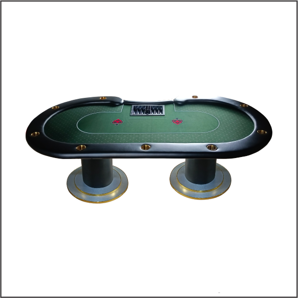Bàn Poker Chuyên Nghiệp Củ Chi: được thiết kế theo tiêu chuẩn quốc tế có kích thước 80x120x240cm thường dành cho 10 người chơi. Bàn Poker được trang bị đầy đủ các phụ kiện như Tray, Rake, hệ thống Cup Holder chuyên nghiệp. Viền bạn được ốp da Micofiber Black cao cấp cho cảm giác êm ái khi tỳ tay và được bo viền kim loại trang trí sang trọng. Mặt bàn sử dụng gỗ cao cấp chịu lực tốt chống cong vênh mối mọt, mặt bàn sử dụng vải Gaming Suede chuyên dụng nhập khẩu từ châu âu, có khả năng kháng nước, chống nhăn, bề mặt bàn luôn láng mịn giúp quân bài lướt êm mượt. Chân bàn được ốp Melamine vân gỗ chống ẩm bền đẹp cùng thời gian. Đế chân bàn được ốp Melamine bi viền kim loại sang trọng.