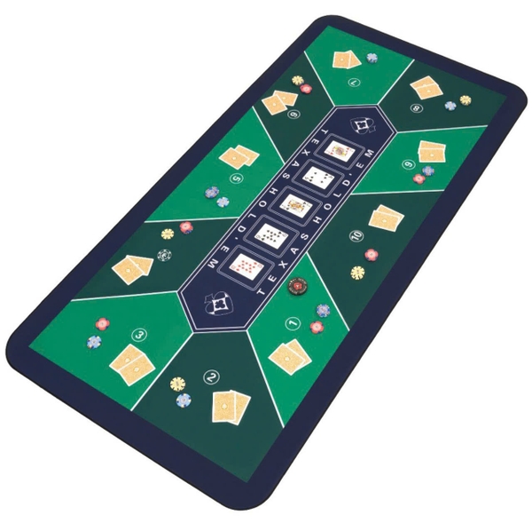 Thảm poker được sử dụng nhiều do tính cơ động dễ di chuyển theo người, Hiện tại trên thị trường có các mẫu thảm poker: thảm nỉ, thảm vải, thảm cao su. Kích thước thảm poker 90x180cm chơi tối đa 10 người, thảm poker 60x120cm chơi tối đa 6 người, thảm poker 75x150cm chơi tối đa 8 người.