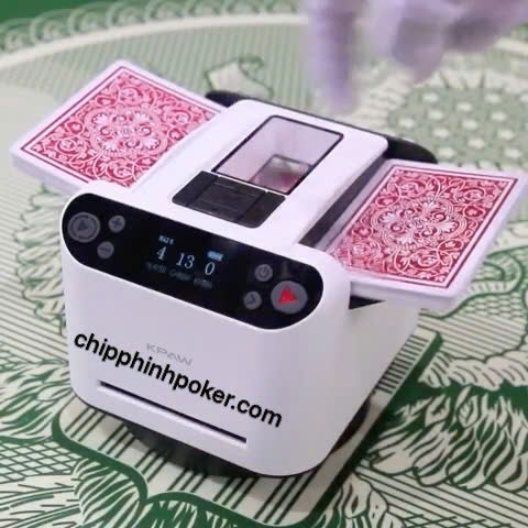 Máy Chia Xáo Bài Tự Động KPAW: là dòng máy vừa xáo bài vừa chia bài tự động mới hiện đại nhất hiện nay. Máy có dụng lượng pin 5200Mah giúp thời gian sử dụng lâu. Máy được trang bị các nút gọi thẻ không dây đến vị trí tuỳ chỉnh, đây là chức năng độc nhất chỉ có ở máy KPAW.