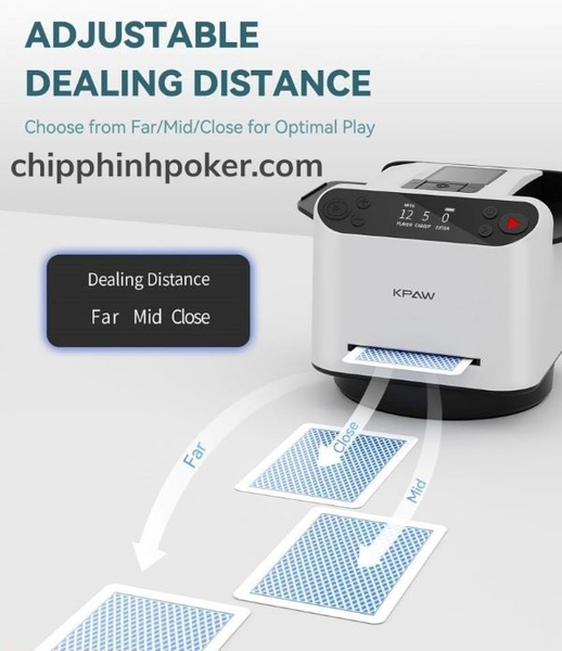 máy chia xáo bài kpaw có thể điều chỉnh vị trí chia xa gần của người chơi
