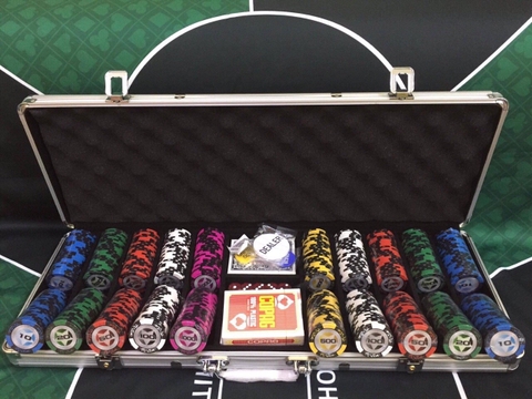 Ví Dụ Một Bộ 500 Chip Poker gồm: 1 Vali hợp kim nhôm chống sốc sang trọng, 500 Chip Poker, 2 bộ Bài Nhựa Poker tặng kèm, 1 thẻ Dealer, 1 thẻ Big Blind, 1 thẻ Small Blind, 5 Xúc Xắc, 1 thẻ All In, 2 Khóa Vali.