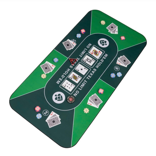 Thảm poker được sử dụng nhiều do tính cơ động dễ di chuyển theo người, Hiện tại trên thị trường có các mẫu thảm poker: thảm nỉ, thảm vải, thảm cao su. Kích thước thảm poker 90x180cm chơi tối đa 10 người, thảm poker 60x120cm chơi tối đa 6 người, thảm poker 75x150cm chơi tối đa 8 người.