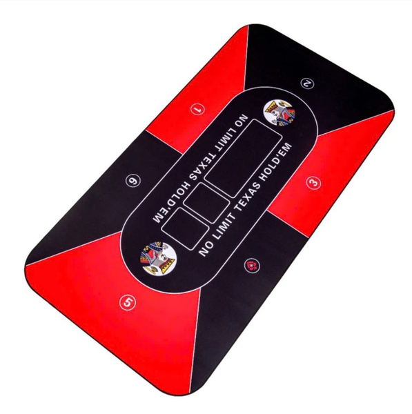 Thảm poker được sử dụng nhiều do tính cơ động dễ di chuyển theo người, Hiện tại trên thị trường có các mẫu thảm poker: thảm nỉ, thảm vải, thảm cao su. Kích thước thảm poker 90x180cm chơi tối đa 10 người, thảm poker 60x120cm chơi tối đa 6 người, thảm poker 75x150cm chơi tối đa 8 người.