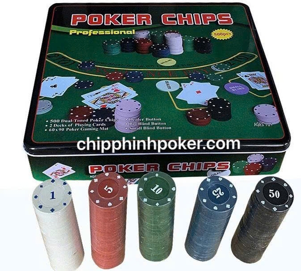 bộ phỉnh poker 500 chip nhựa và đầy đủ phụ kiện trong hộp thiếc cao cấp