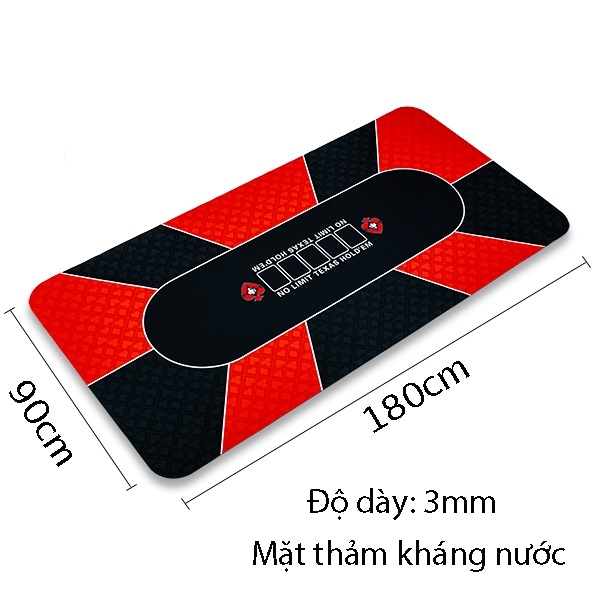 thảm poker cao su mặt thảm mịn màng kết hợp tinh tế màu đen với màu đỏ