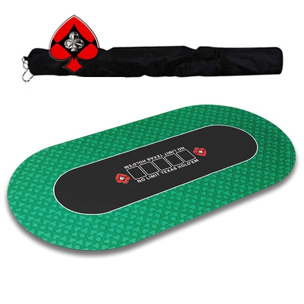 thảm poker cao su hình oval màu xanh lá với họa tiết lá bài in chìm nổi bật